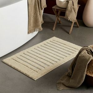 Цей килимок з бавовни у ванну кімнату чудово вбирає вологу, не ковзає та легко чиститься. Бежевий відтінок гармонійно поєднується з будь-яким стилем інтер’єру – від мінімалізму до класики.