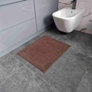 Килимок виготовлений зі 100 % поліестеру щільністю 1000 г/м² і має м’який ворс заввишки 1 см. Обшитий край надає акуратного вигляду та продовжує термін служби. Протиковзке SEBS-покриття надійно фіксує килимок на підлозі, запобігаючи ковзанню навіть на вологій плитці.