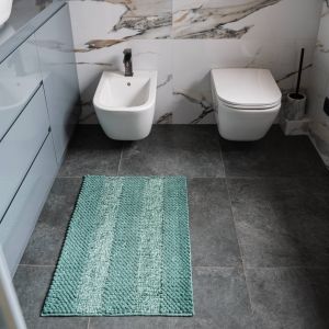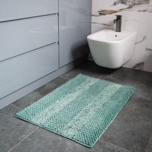 Крім практичного призначення, килимок DarianA є важливим декоративним елементом у ванній. Дизайн його цікавий: одна смуга – звичайної мікрофібри, друга – вистриженої з люрексом.