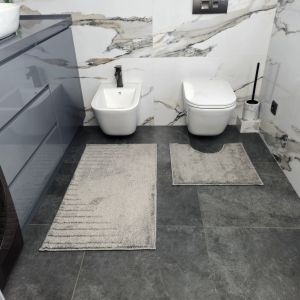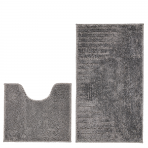 Набір килимків у ванну кімнату виготовлений з міцного поліестеру з щільним петлевим ворсом висотою 10 мм. Така структура забезпечує довгий термін служби, стійкість до зношування та легкий догляд. Килимки добре перуться, швидко висихають і не створюють сприятливого середовища для розвитку бактерій.