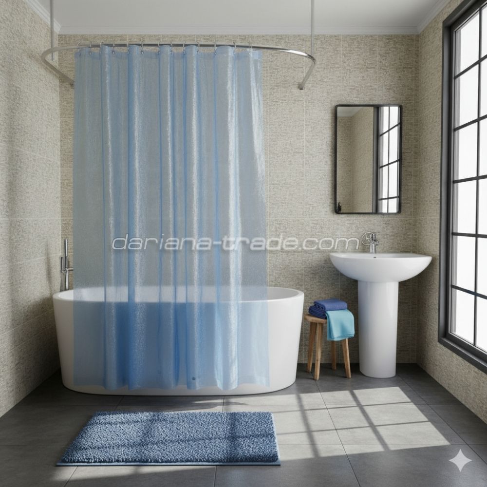 Шторки для душу PEVA (поліетиленвініл ацетат) - це популярний варіант душових шторок, які широко використовуються для забезпечення приватності під час душу, а також для захисту від бризок води, які можуть виходити з душового простору. Ось деякі основні риси та характеристики шторок для душу з матеріалу PEVA: